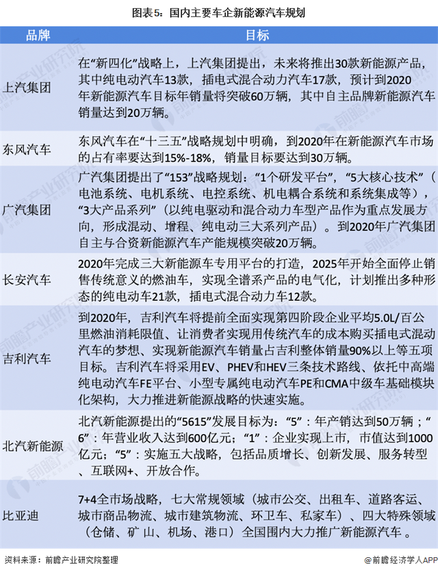 随着中国成为世界第一大新能源汽车市场,传统车企的布局陆续进入爆发阶段。国内车企与国外车企对比,国内企业新能源汽车扩张速度仍较快,围绕新能源汽车的战略推进越来越密集,行业竞争加剧。我国主要车企新能源汽车规划如下: